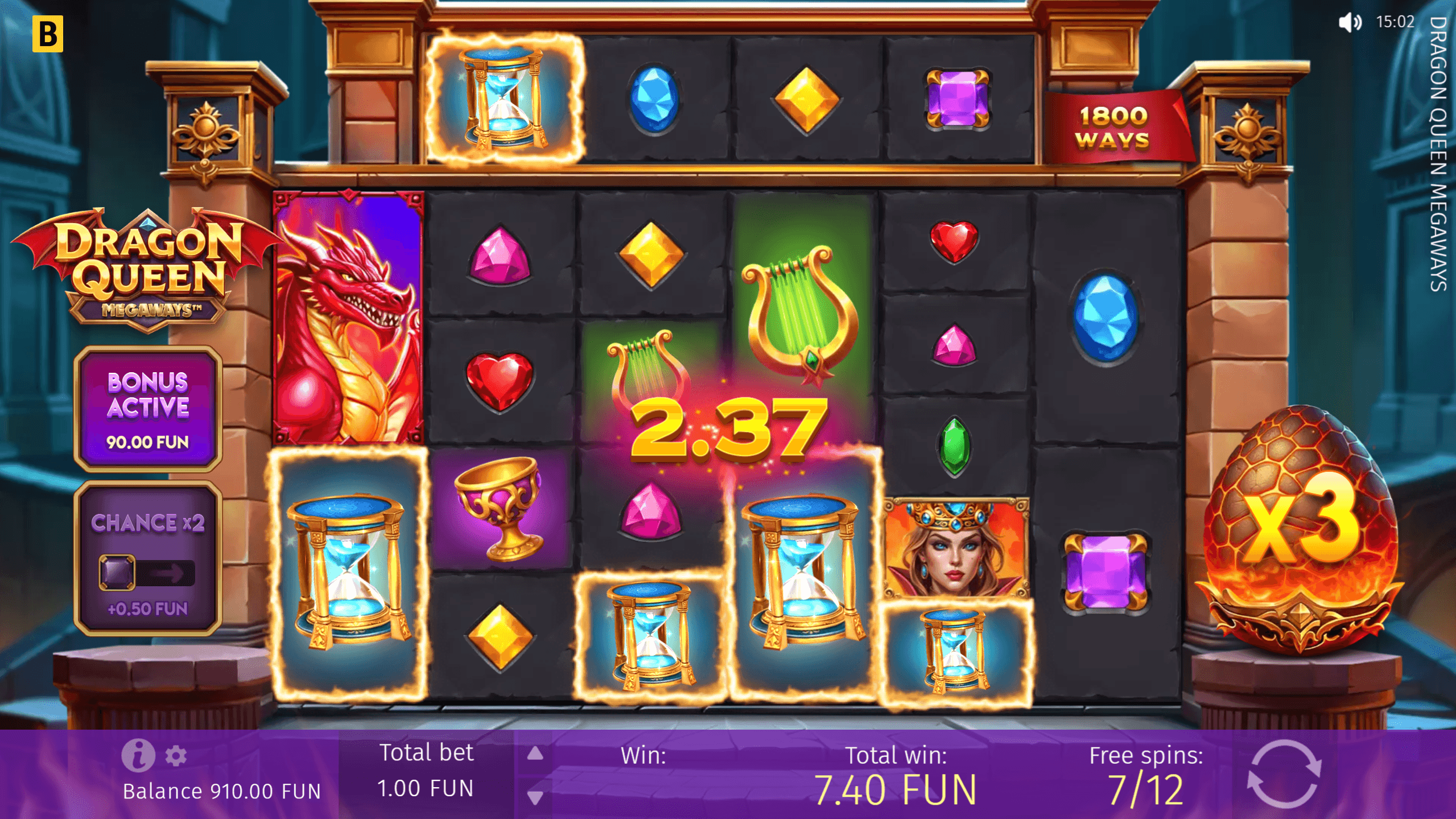 Wheel of Fortune Free Spins: 3+ dragon‑egg scatter → sorskerék, amely 5–15 pörgetést és x2–x25 globális szorzót ad. A kerék bármely retriggernél újra pörög, az értékek összeadódnak; retrigger korlátlan, amíg el nem éred a 6 000× plafont.