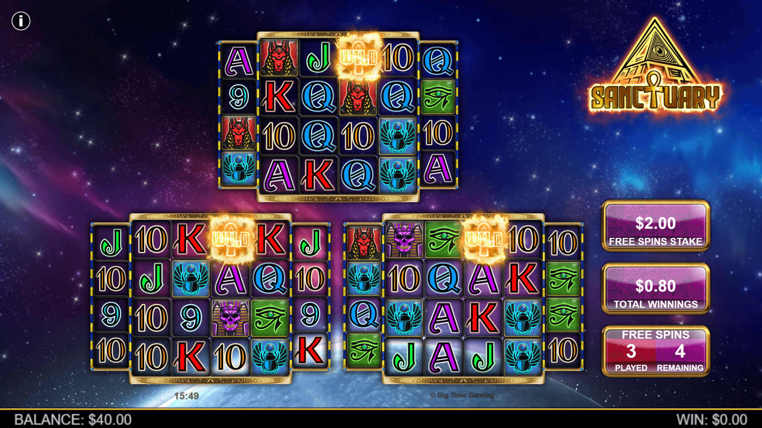 Sanctuary a Big Time Gaming (BTG) grandiózus „űr‑Egyiptom” slotja, ahol akár négy 6 × 4‑es videóslot pöröghet egyszerre. A 96,38 %-os RTP, a „Very High” volatilitás és a 44 070×-es hivatalos max win szinte könyörög a high‑roller grind módért. A teljes tárcsás, x8‑as Full Reel Wildok, a több‑szintű Free Spins Gamble és a Win Exchange™ miatt minden döntésed számít – ez nem egy „bet & forget” játék, hanem igazi adrenalin‑menedzsment.