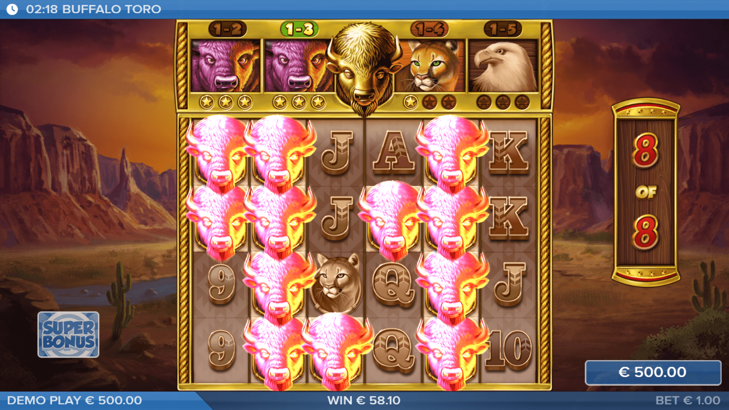 Buffalo Toro a sivatagi prérire röpíti a Wild Toro‑széria jól ismert hősét: Toro bikánk ezúttal bölényekkel és sasokkal kergetőzik, miközben a Matador már “WANTED” plakátokon szerepel. A 95 %-os RTP, a 7/10‑es volatilitás és a 50 000×-es plafonnyeremény elsőre húzós, de amikor beindul a Matador Re‑Spin, a Toro Goes Wild és a Super Bonus „x50 Multiplier Coins” funkció, gyorsan kiderül, miért lett ez a rész a streamerek új kedvence. Röviden: tempós, látványos, és bőven nagyobbat harap, mint a sima „Book” vagy „Buffalo” klónok.