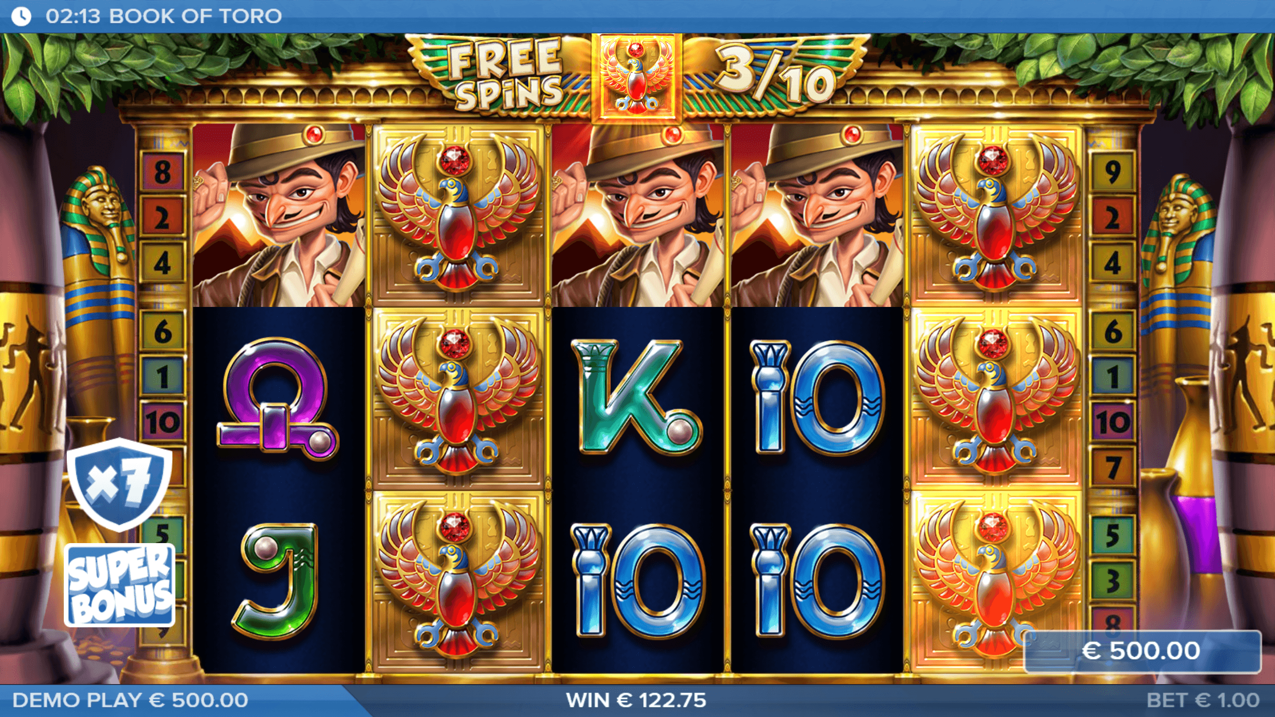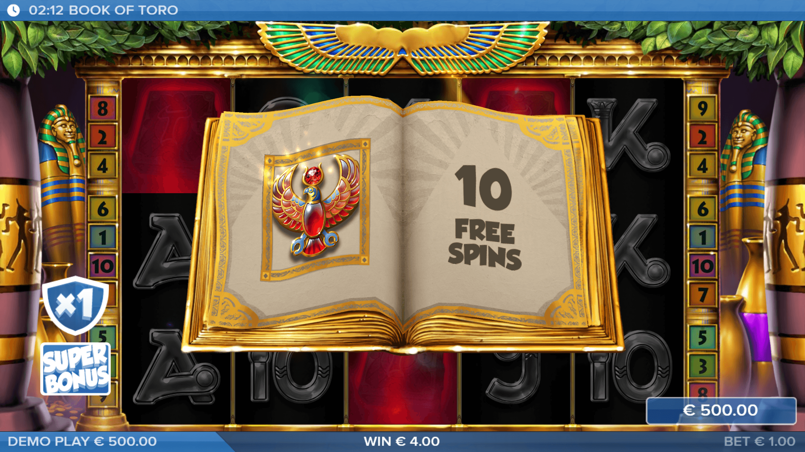 Az 10 free spin bónusz a klasszikus „Book” mechanikát használja: a kör elején egy véletlen szimbólum lesz a Speciális Kiterjedő ikon. Retriggerenként egy újabb speciális szimbólum adódik (max. 3), növelve a 10 000× potenciált. A Toro és Mummy funkciók a bónuszban is aktívak, így egyetlen kör alatt vad szorzók és masszív kiterjedések kombinálódhatnak.