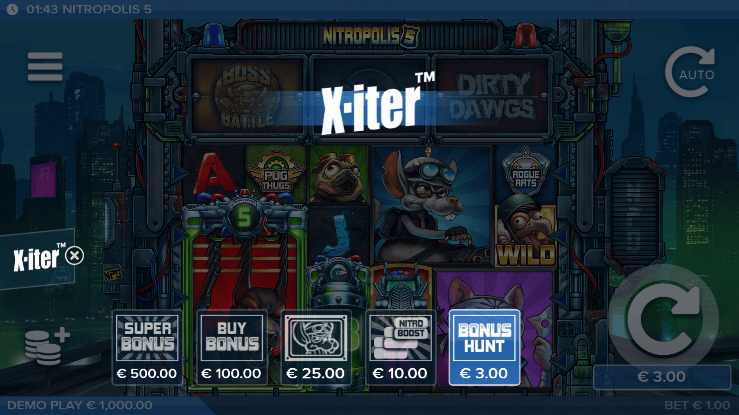 X‑iter vásárlások: Bonus Hunt 3×, Gang Warfare 10×, NPD 25×, Bonus 100×, Super Bonus 500× tét.