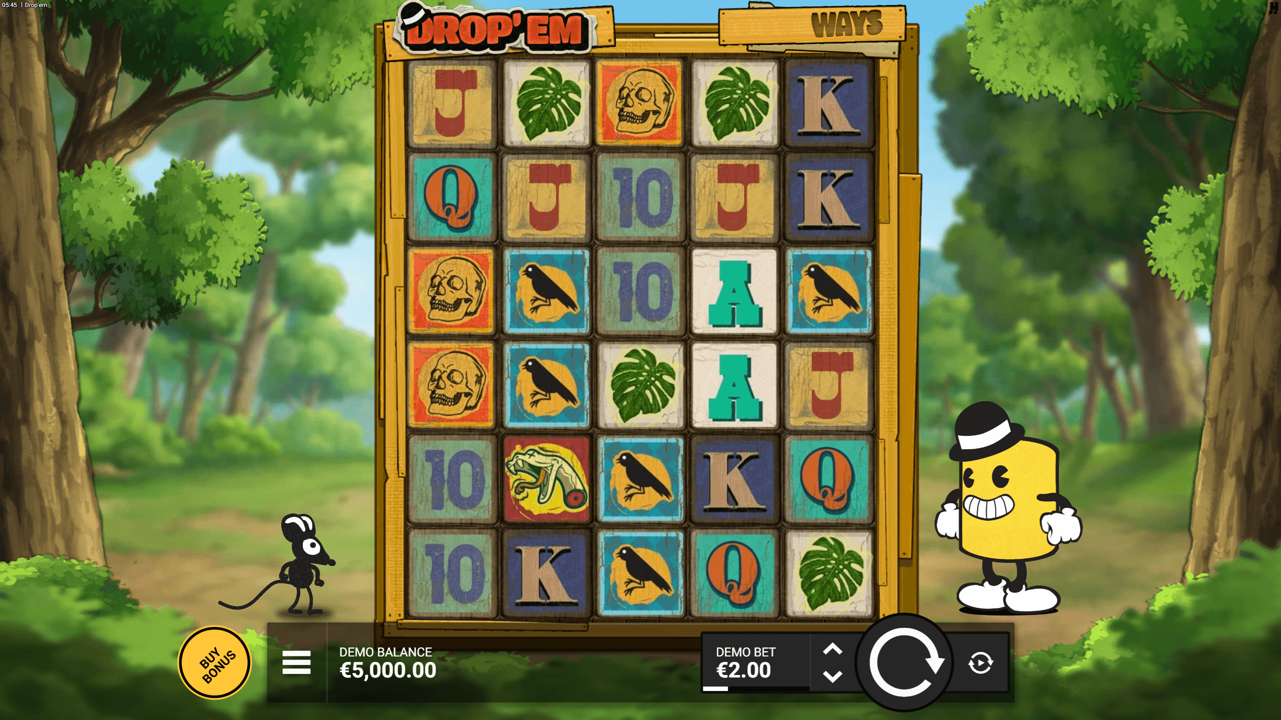 Az alapjáték egy 5 tárcsás, 6 soros rácson fut, 7 776 módon fizet. A téthatár 0,10 € – 100 € között állítható. Kulcsmechanika a Drop szimbólum: a nyíl alatti ikonok eltűnnek, a lyukakat pedig egy véletlenül választott szimbólum (alapjátékban bármelyik) tölti fel – így akár több új kombináció is rögtön kifizethet. Canny a konzerv és Mona az egér a tárcsák mellett mutatják, melyik szimbólum esik be a „drop” után.