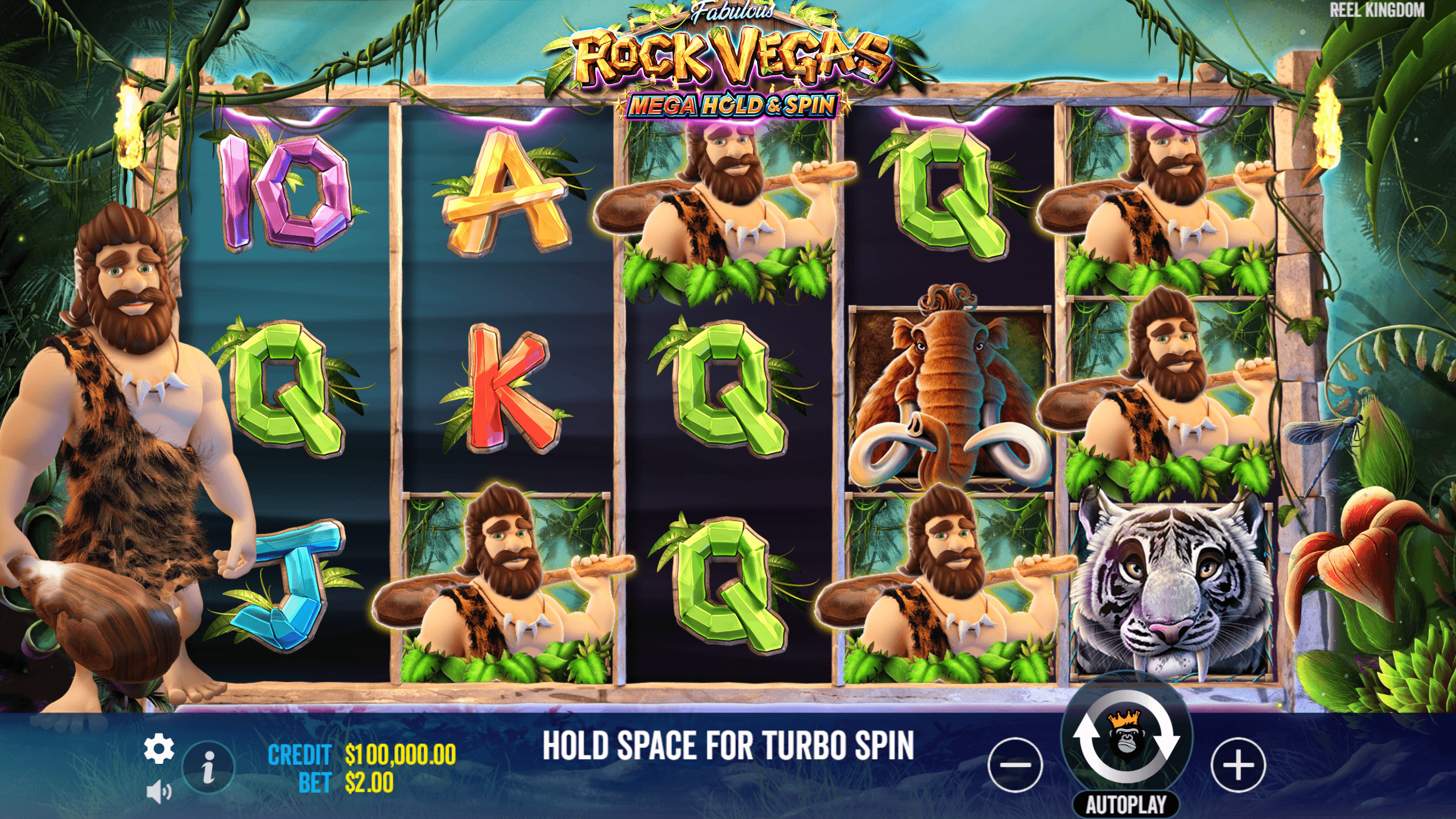 Rock Vegas a Pragmatic Play és a Reel Kingdom közös őskori kalandja, amely a barlangrajz-hangulatot ötvözi egy extra magas volatilitású, max. 10 000× potenciált rejtő játékmenettel. A fő attrakció, a Mega Hold & Spin respin-bónusz egy 10×10-es óriásrácsra dob át, ahol a kőszimbólumok akár x500-as multiplikátort is villanthatnak. Ha bírod a „mindent vagy semmit” típusú slotokat, ez a kőkorszaki buli komoly adrenalin-löketet adhat.
