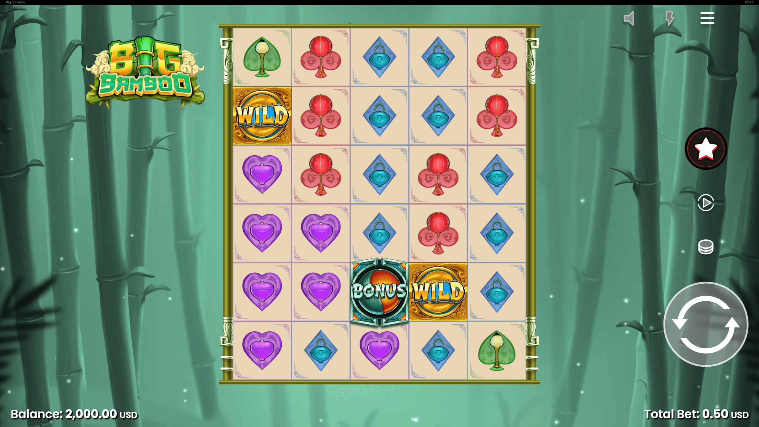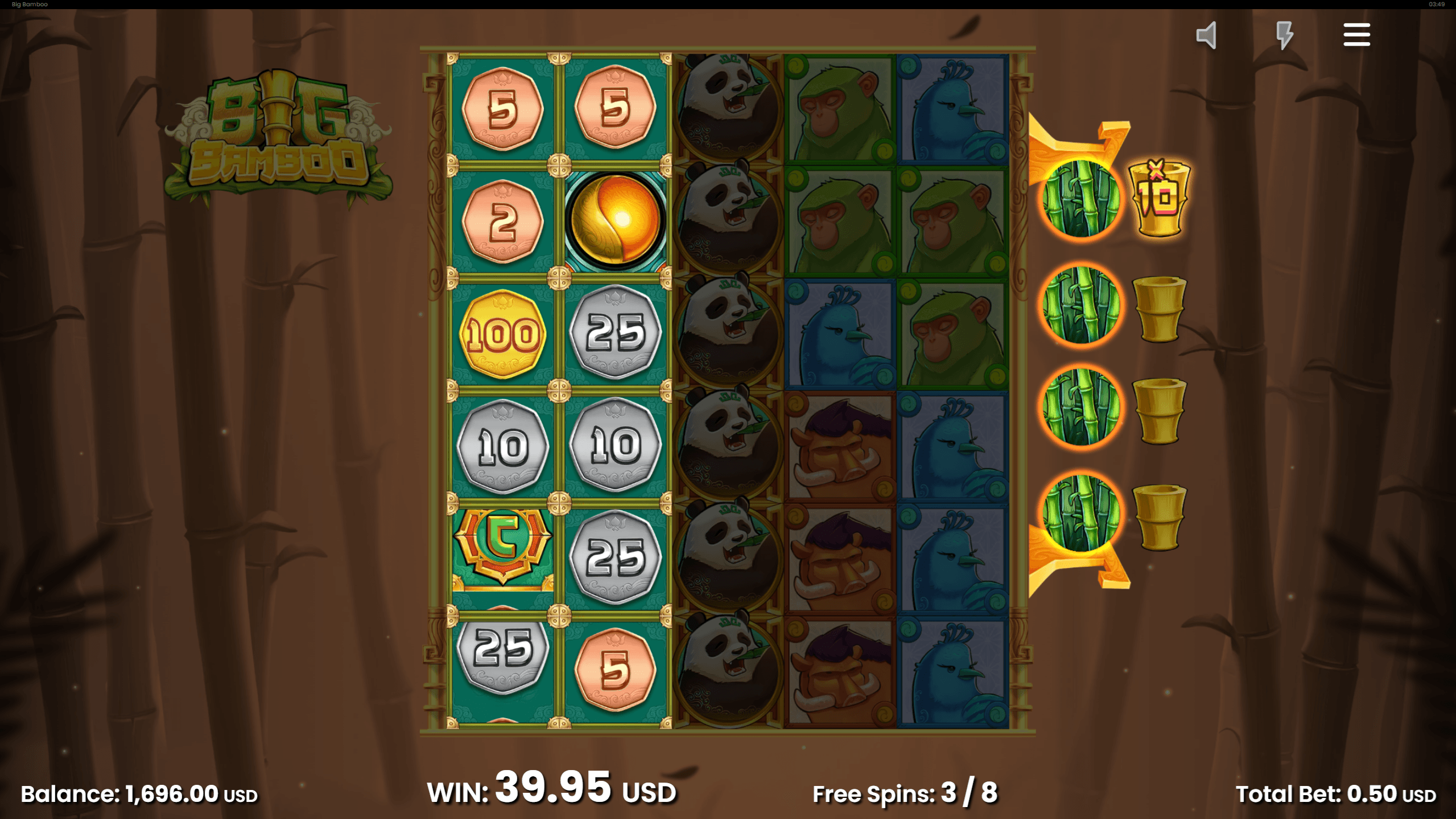 * Max. nyeremény: 50 000× teljes tét – a Golden Bamboo + szorzóérme kombó hozza a plafont
