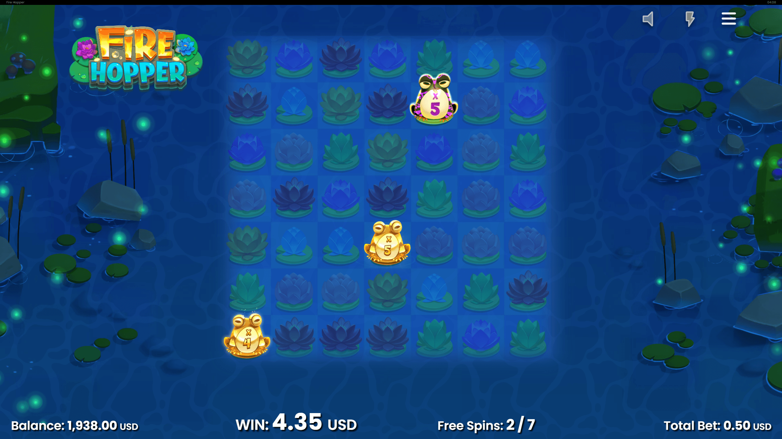 Bonus Firefly: ha a béka ide ugrik, 7 Free Spins indul; a béka és aktuális szorzója átkerül a bónuszba.
