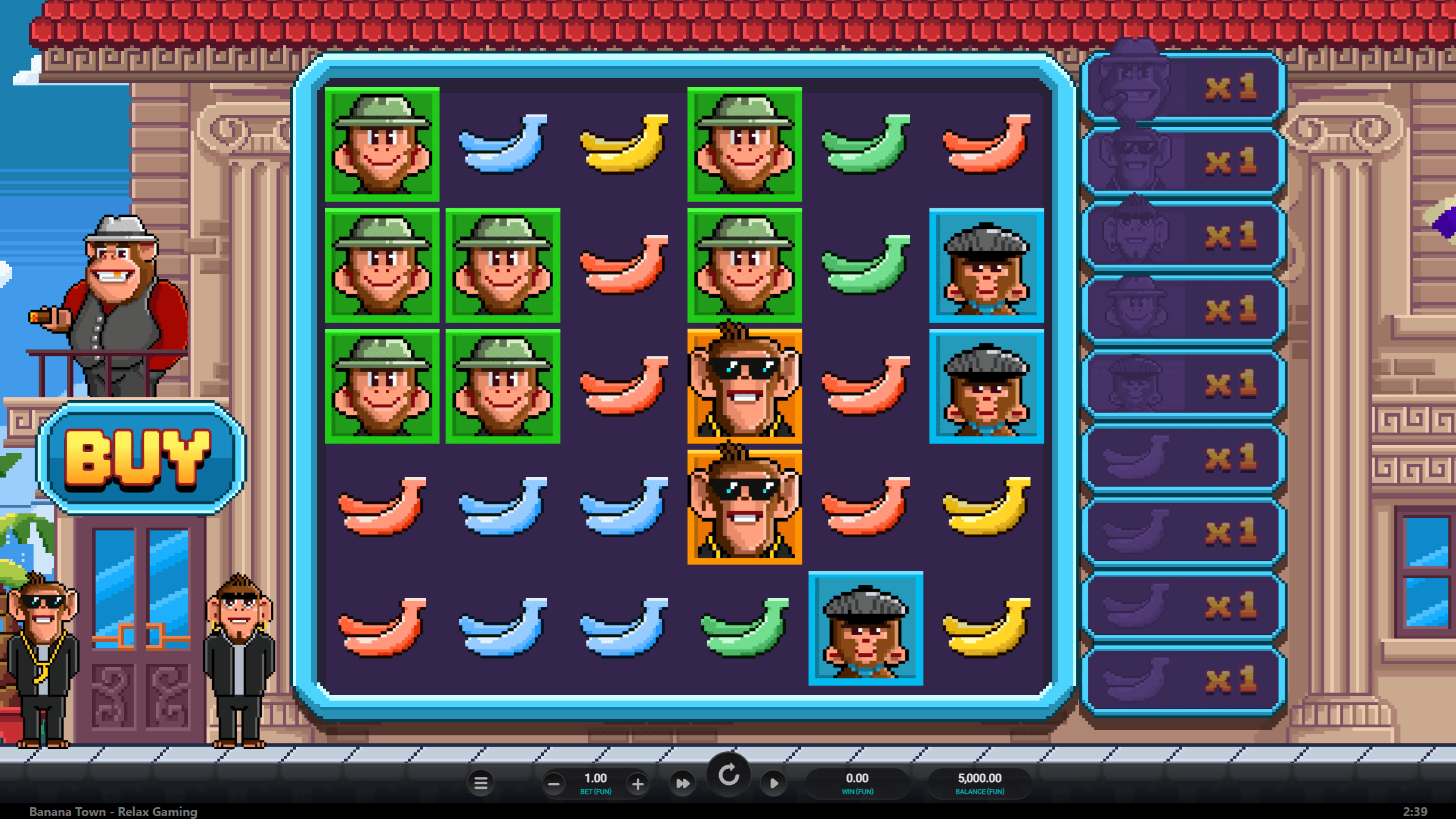 Banana Town a Relax Gaming „majom‑maffia” klónja Sweet Bonanza‑stílusú mechanikával, de permanensen növekvő szimbólumszorzókkal turbózva. A 96,13 %-os alap RTP, a nagyon magas volatilitás és a 10 000×-es maximális kifizetés remek összhangot alkot: minden nyerő klaszter után dupla szorzó marad a táblán, így a játékmenet körönként egyre izgalmasabbá válik. A rajzfilmes gengszter‑majmok, a hip‑hop háttér és a folyamatos upgradek gyorsan rabul ejtik a „cluster pays” rajongókat.