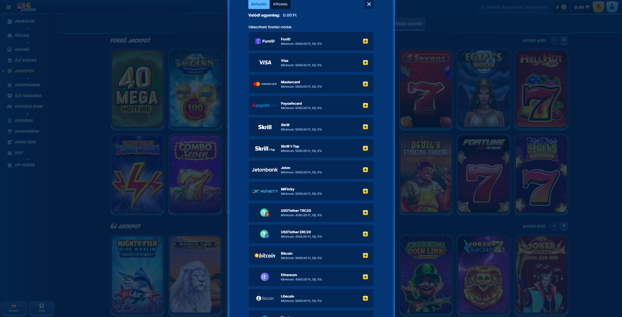 SG Kaszinó fizetési információk és lehetőségek