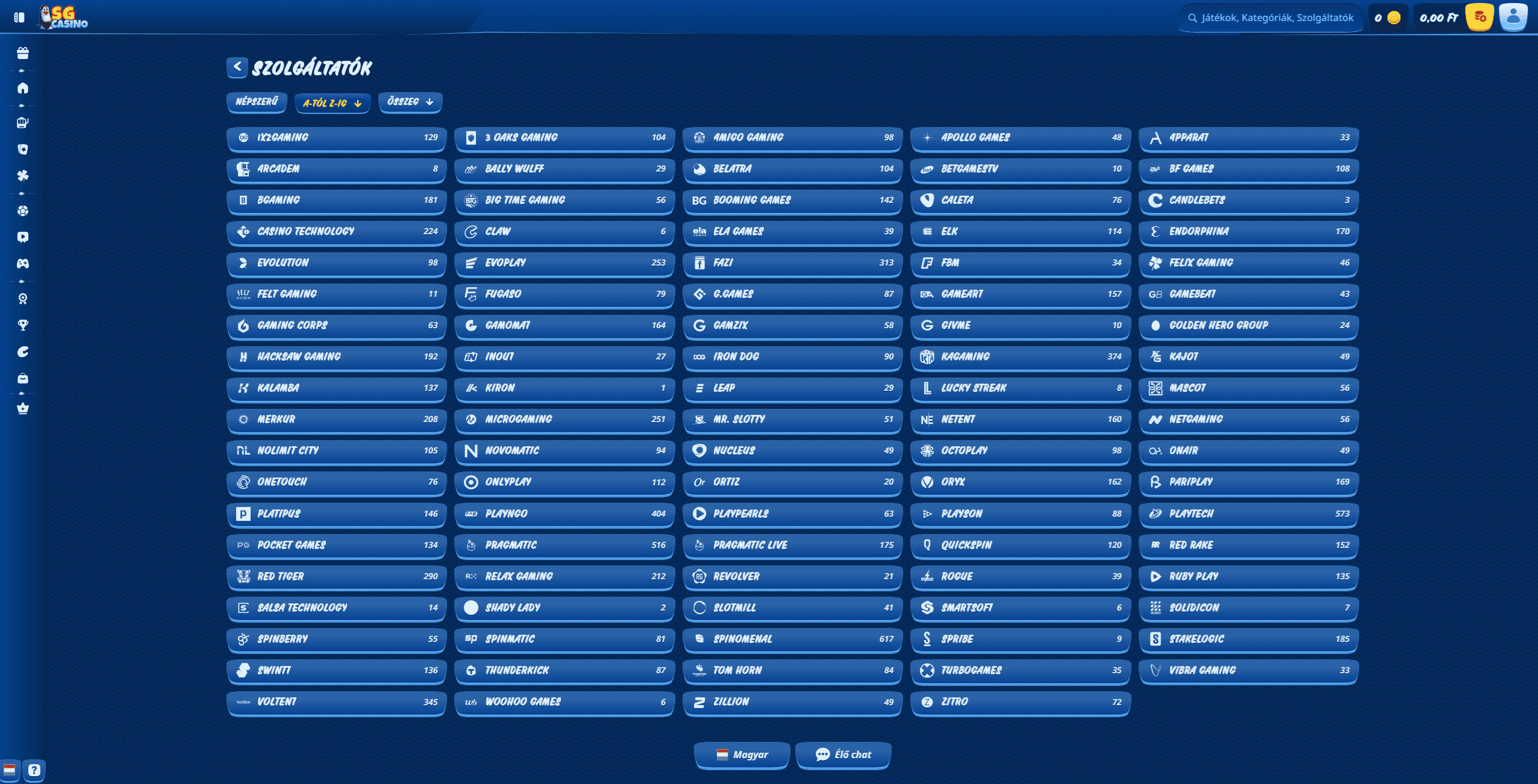 Az SG Kaszinó kiemelkedő játékkínálattal rendelkezik, a legnépszerűbb szolgáltatóktól: