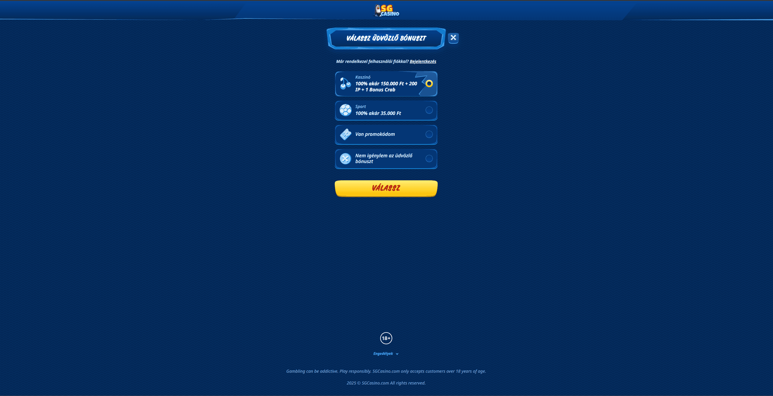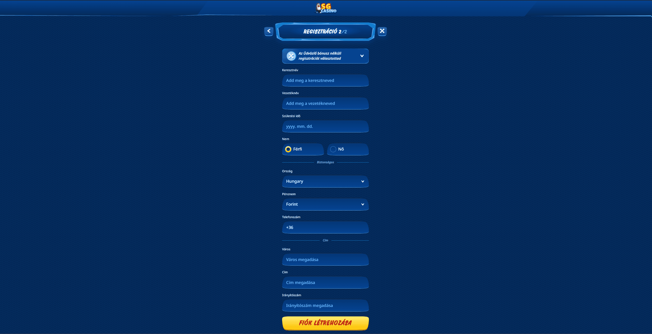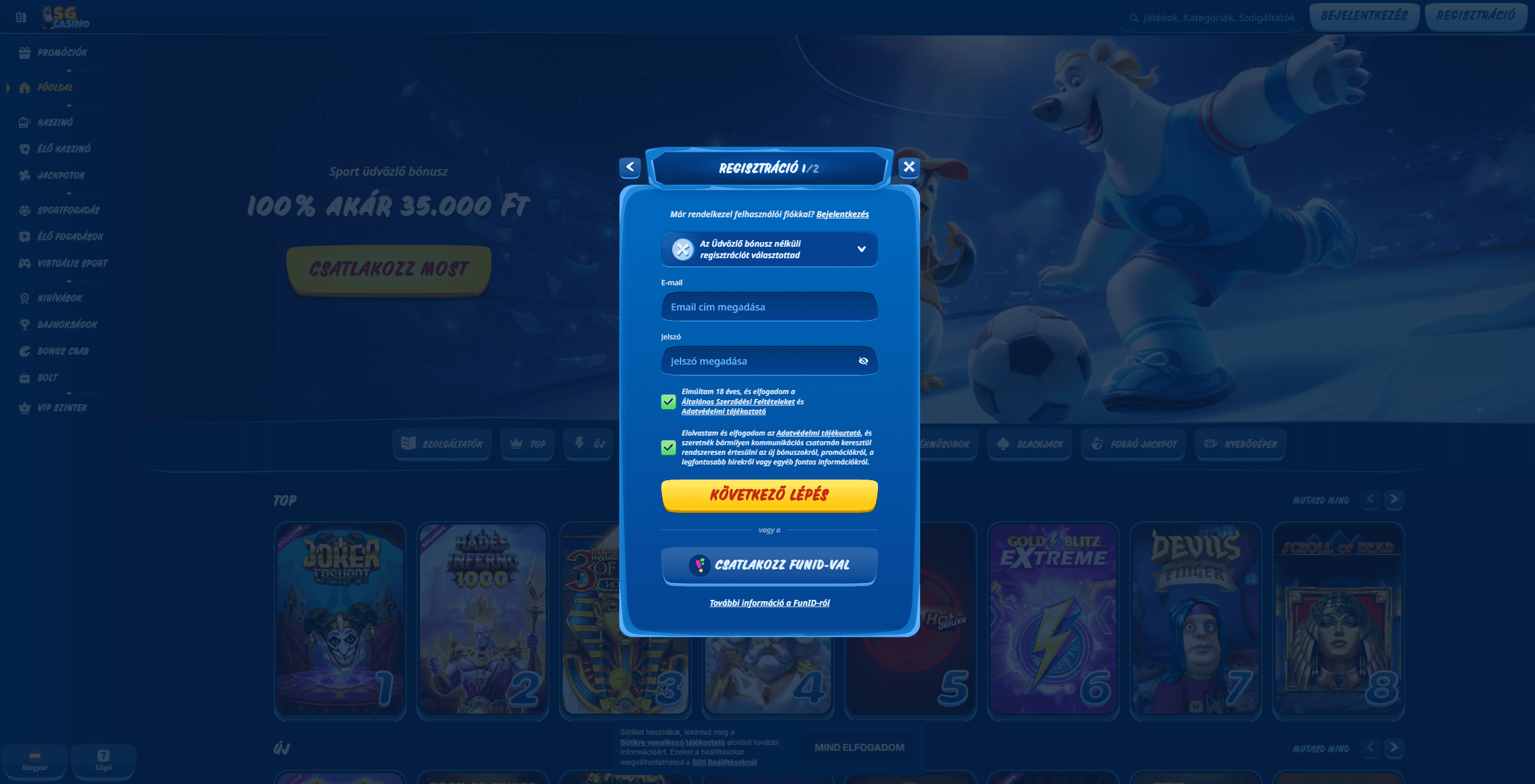 SG Kaszinó regisztráció